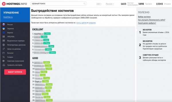 HostiMan занимает 1 место по Быстродействию среди хостинг-провайдеров рунета.